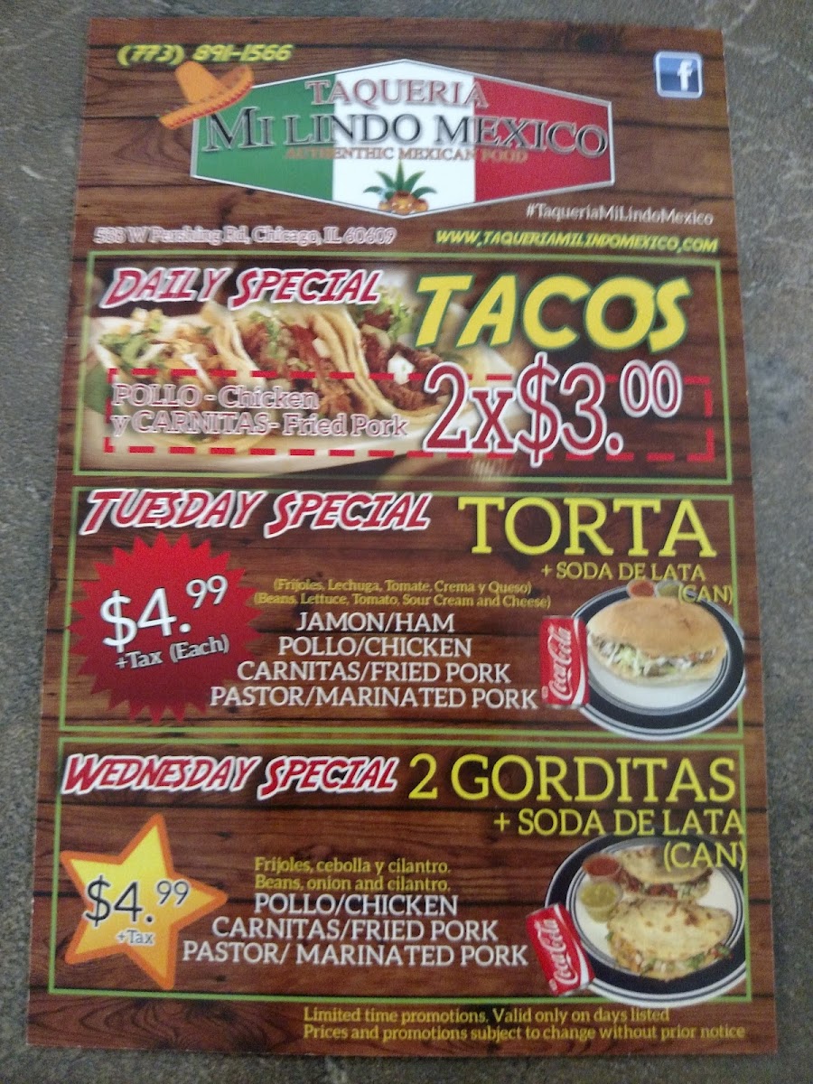 At Taqueria Mi Lindo Mexico, located at 538 W Pershing Rd, Chicago, IL, the menu offers a delightful variety of authentic Mexican dishes, each packed with bold flavors. For taco enthusiasts, the restaurant serves several delicious options including Asada, Al Pastor, Barbacoa Lengua, and Fried Tripe, all representing traditional Mexican street food staples. Each taco is an explosion of flavors, with tender meats and the perfect blend of spices.