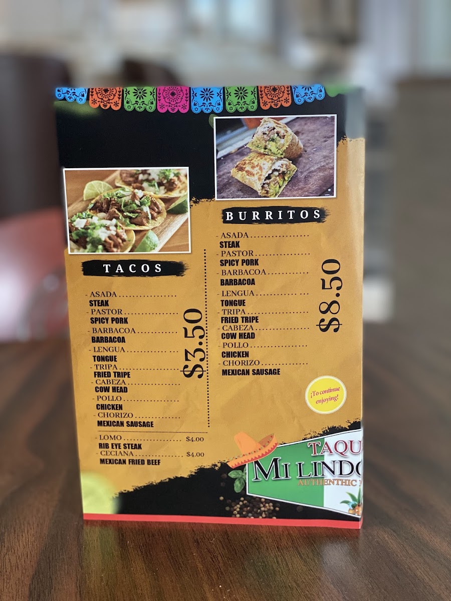 For those craving something outside of tacos, there are other exciting dishes to choose from such as Steak, Spicy Pork, Pastor Tongue, and even Cow Head, all offering a rich and satisfying experience. Whether you're a fan of bold and spicy flavors or prefer something more traditional, Taqueria Mi Lindo Mexico has a menu that caters to all tastes, making it an ideal spot for both locals and visitors to experience the true taste of Mexico.